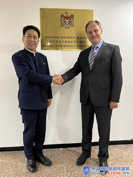 ? ? ? ?中国国际新闻传媒网6月10日电 2022年6月9号上午十时许,著名影视演员周恩来总理扮演者周红军先生受摩尔多瓦驻华大使馆的邀请一行三人走进摩尔多瓦驻华大使馆,与摩尔多瓦共和国特命全权大使贝拉基什-杜米特鲁先生就双方文化、经贸等事项进行亲切友好的交流。